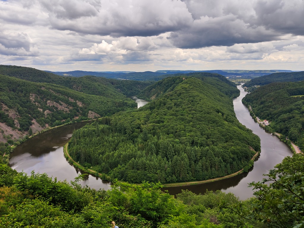 Die Saarschleife hab ich schon mal im Regen gesehen. Da die Schleife gewissermaßen am Weg lag, wollte ich nochmal hin. Das eigentliche Highlight ist der mittlerweile errichtete Baumwipfelpfad, dessen Höhepunkt wohl einen atemberaubenden Blick auf die Saarschliefe bietet. Ich hatte nicht die Zeit und kann es deshalb nur vermuten.