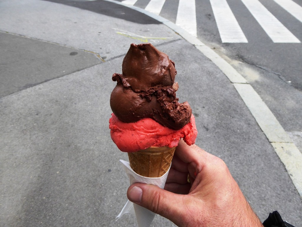 Highlight in Maribor – 2 “Kugeln” Eis, 90% davon für den Magen, 10% für’s Gesicht