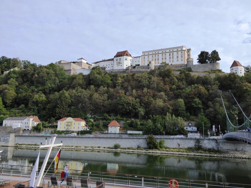 rechts unten im Bild die Pension “Haus Panorama”, oben im Bild die an diesem Tag leider ausgebuchte Passauer Jugendherberge in der “Veste Oberhaus”