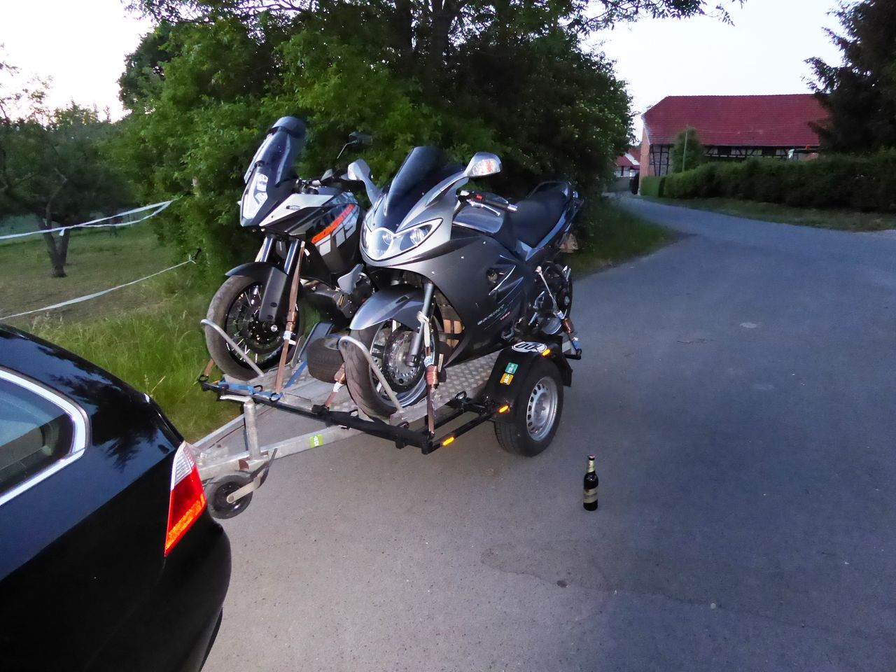 Nun haben wir`s geschafft. Gute 1500 km Anreise mittels Auto und Hänger (Danke Dir nochmal lieber Hubert für die Hängerleihgabe) sowie im Sattel schlauchen schon etwas. Bevor ich jetzt wieder über die unangenehmen Seiten des Älterwerdens philosophiere, mach ich hier Schluss mit der Einleitung und gebe im Schnelldurchlauf eine Zusammenfassung des bisherigen Geschehens.