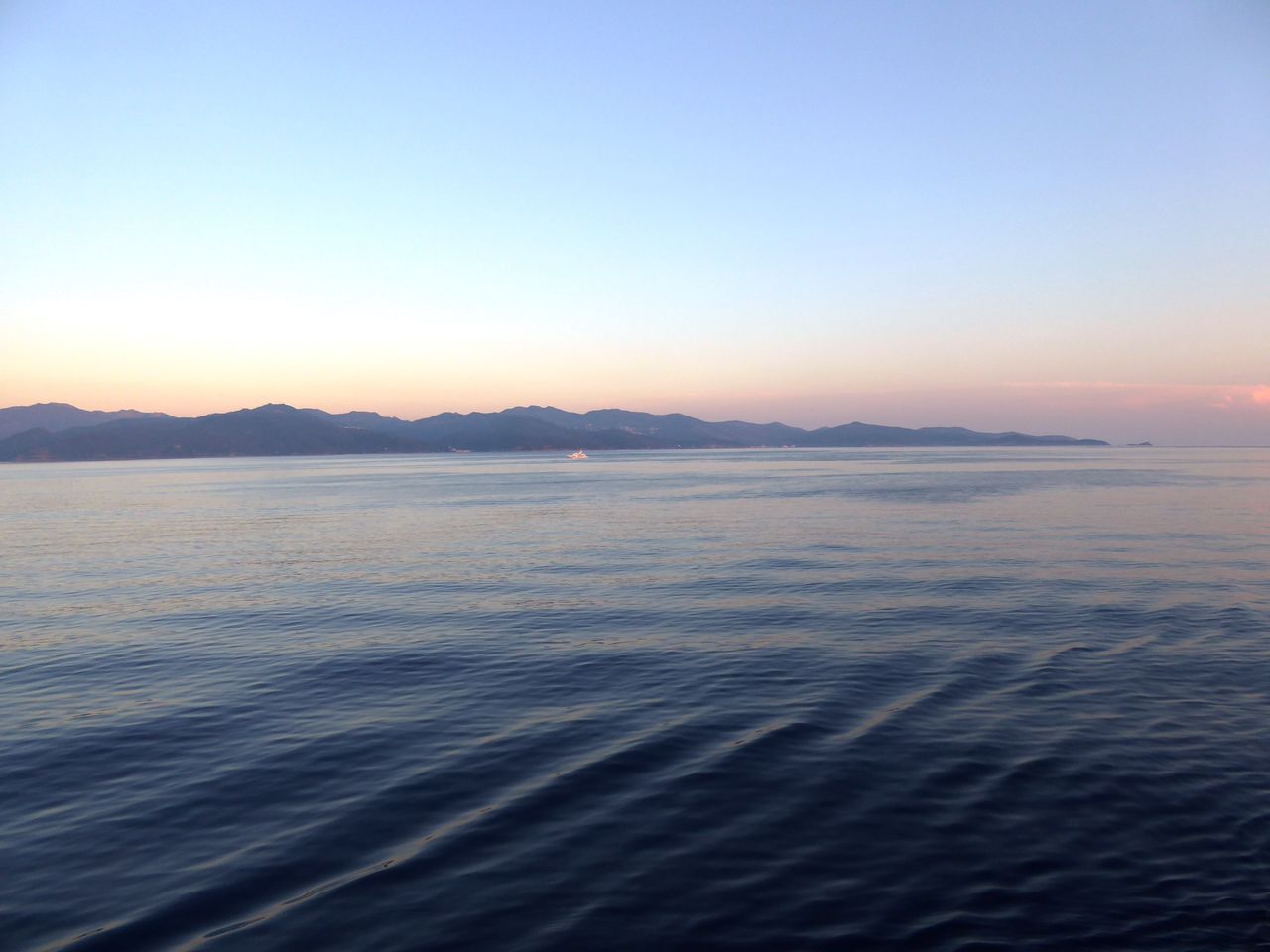 Korsika in Sicht (Cap Corse im Sonnenaufgang):