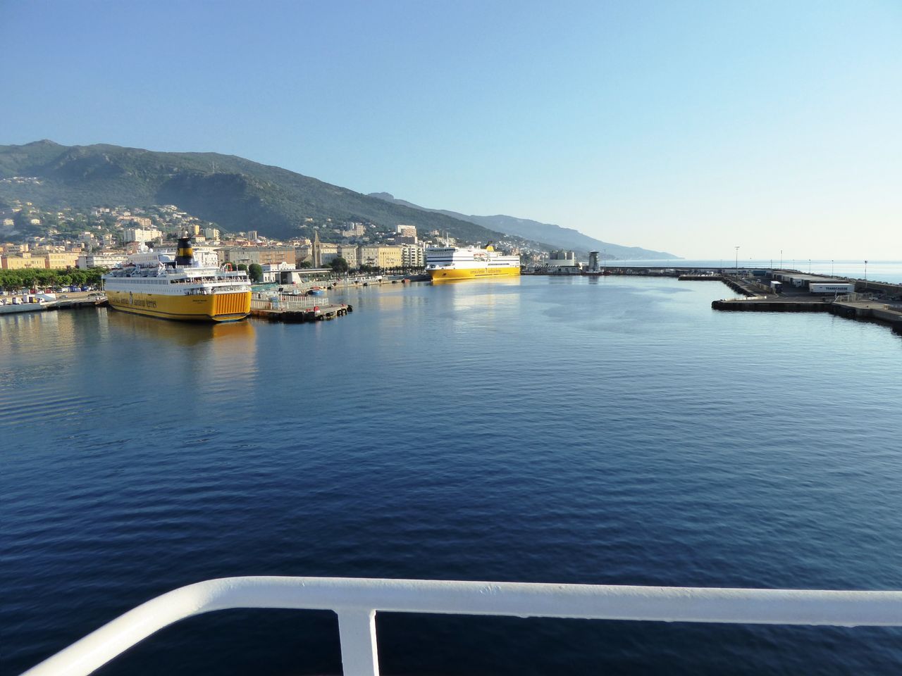 Kurz danach Hafeneinfahrt in Bastia gegen 8 Uhr