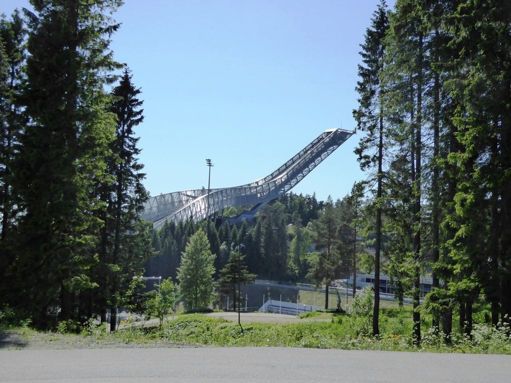 Für Oslo hatte ich keine Zeit. Ich will nach Norden. Für einen Überblick hatte ich mir im Rahmen der Reisevorbereitung die Aussichtsplattform der Sprungschanze auf dem Holmenkollen ausgesucht. Leider war der Fahrstuhl nach oben gerade außer Betrieb. So gibt es nur einen Blick auf Oslo von weiter unten.