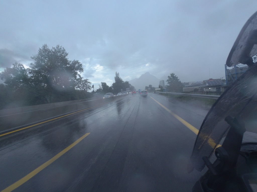 So sieht eine Regenfahrt mit dem Motorrad aus: unterwegs im Regen