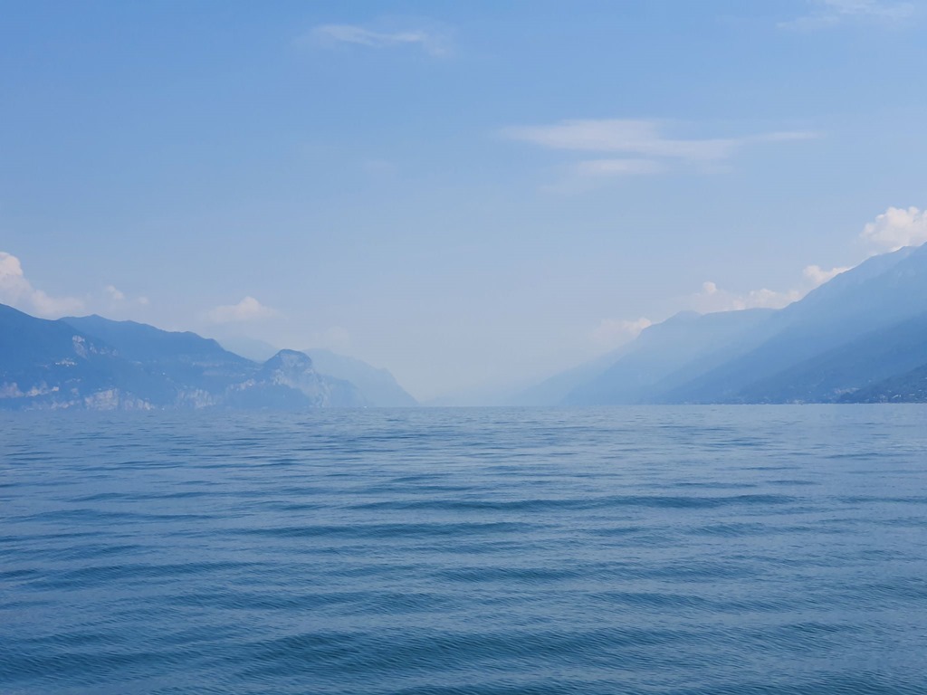 Wie bereits erwähnt, zeigt sich der Gardasee trotz gleichbleibend schönem Wetter optisch jeden Tag von einer anderen Seite. Wegen der anhaltend warmen Temperaturen hat sich mittlerweile das für den Gardasee typisch leicht diesige Bild eingestellt. Wir hatten tatsächlich mit unserer Reise auch insofern Glück, dass wir unmittelbar nach einer Schlechtwetterphase anreisten. So konnten wir sowohl am Montag (Schauderterasse) als auch am Dienstag (Monte Baldo) den See in seiner seltenen Klarheit bewundern.