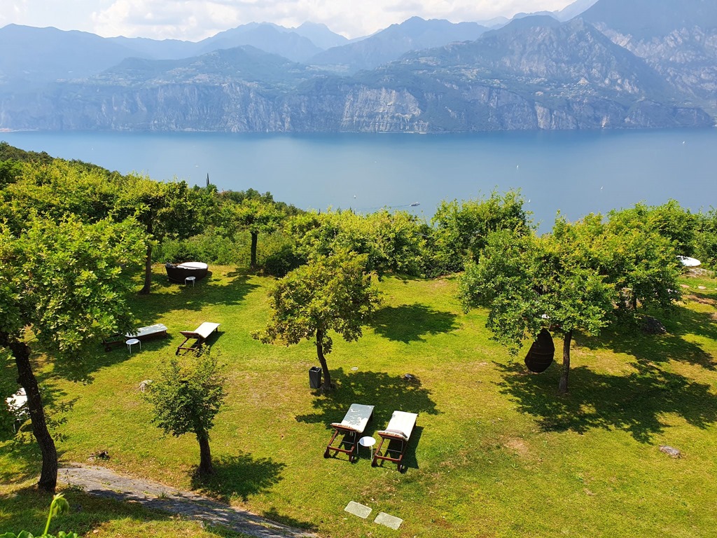 Malcesine lässt sich hervorragend umfahren. Die Via Panoramica – Nomen est Omen – bietet sich dazu bestens an. “Ganz oben” (auf knapp 360 m) angekommen bietet das Hotel Querceto besten Panoramablick zum Cappuccino.