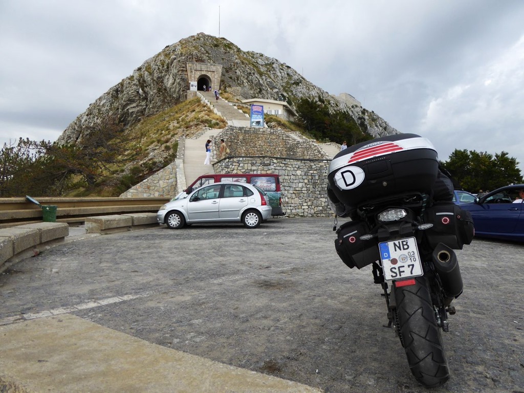 Nun aber schnell. Das Mausoleum des Dichter-Fürsten Nijegos wollte ich mir ansehen. Imposant auf einer 1600 m hohen Bergspitze im Lovcen Gebirge gelegen, reizte mich der Aufstieg sehr. Nijegos ist wohl der bedeutendste Dichter des serbischen Sprachraumes (Wikipedia und Fernsehreportage auf Youtube in Vorbereitung der Reise)