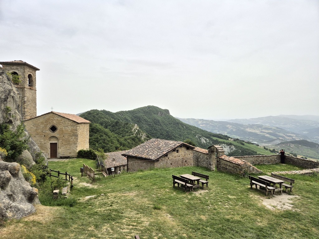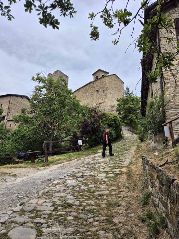Es handelt sich um die Burg Carpineti, deren damalige Besitzerin wieder mal Markgräfin Mathilde von Canossa war. Wie wir erfuhren, ist die Mathilde hier in der Region Emilia-Romagna so etwas wie eine Heilige, vielleicht auch weil sie damals das Zusammentreffen von Heinrich IV und Pabst Georg VII vermittelte.