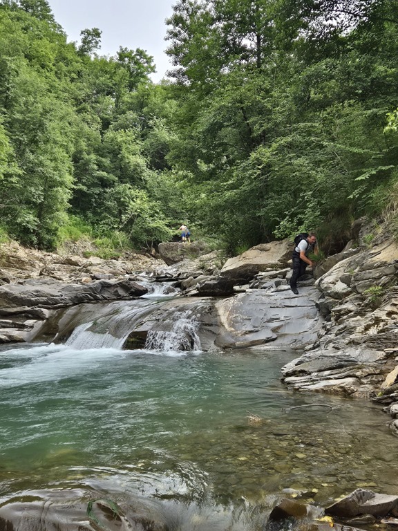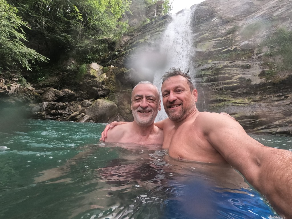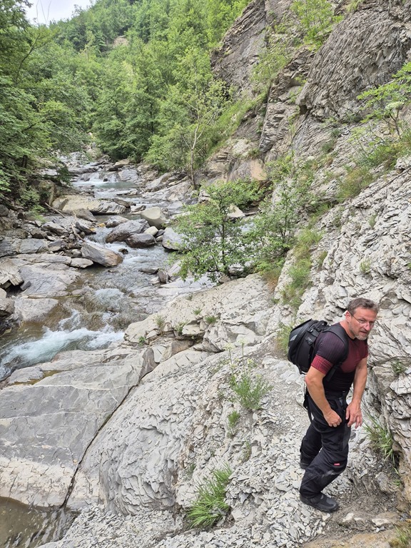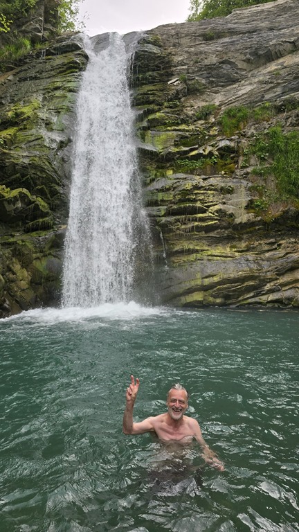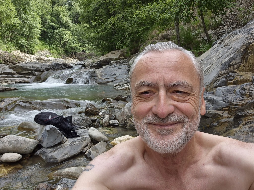 “Das Abenteuer meines Lebens” klingt sicher etwas pathetisch, beschreibt aber unsere Wasserfalleroberung ziemlich gut. Tagesziel heute war Baden unterm Wasserfall “Cascata del Golfarone”. Im Rahmen der Vorbereitung hatten wir zwar vom einigermaßen beschwerlichen Zugang gelesen – manche Google-Rezensenten sprachen von unmöglich – aber das konnte uns nicht abhalten. War sicher übertrieben. Nun ja, wir wurden eines Besseren belehrt. Ich hatte an einer für mich scheinbar unüberwindbaren Stelle ans Aufgeben gedacht…