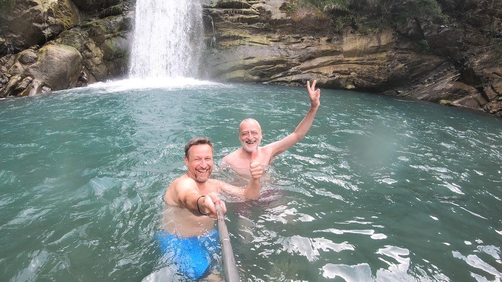 Der “Parkplatz” am Wasserfall. Hier war alles noch ganz easy und ausschließlich Vorfreude angesagt