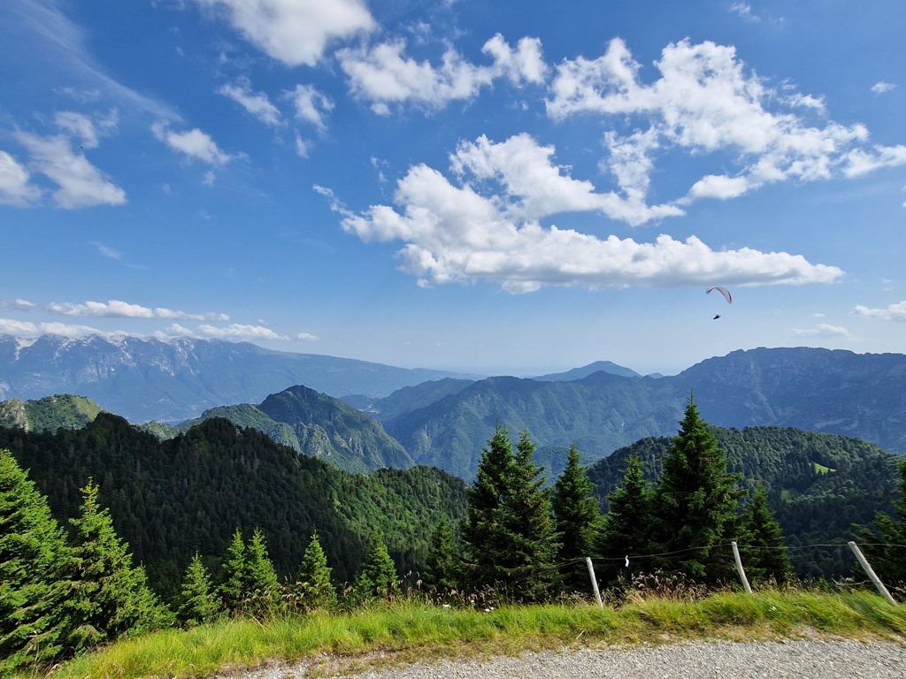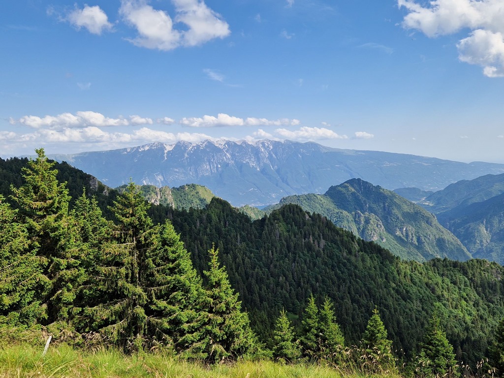 Vom Ledro-See Richtung Storo links abbiegen Richtung Tremazo (ist gut ausgeschildert). Dann “ein paar” Kilometer Kurvenwedeln bis auf die ca. 1700 m gelegene Passhöhe, und ein bisher ungesehenes Panorama auf das Monte Baldo-Massiv beglückt uns.